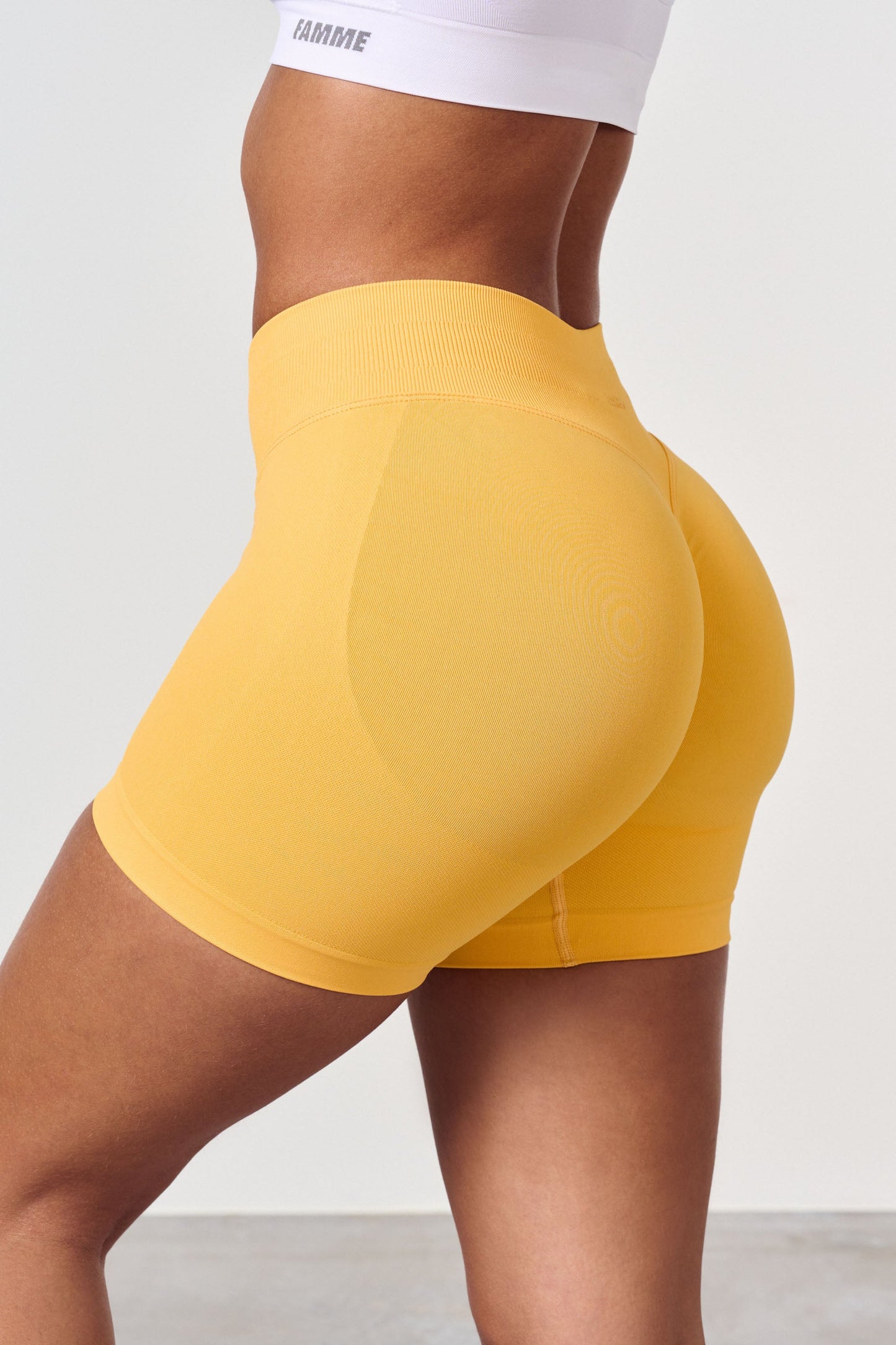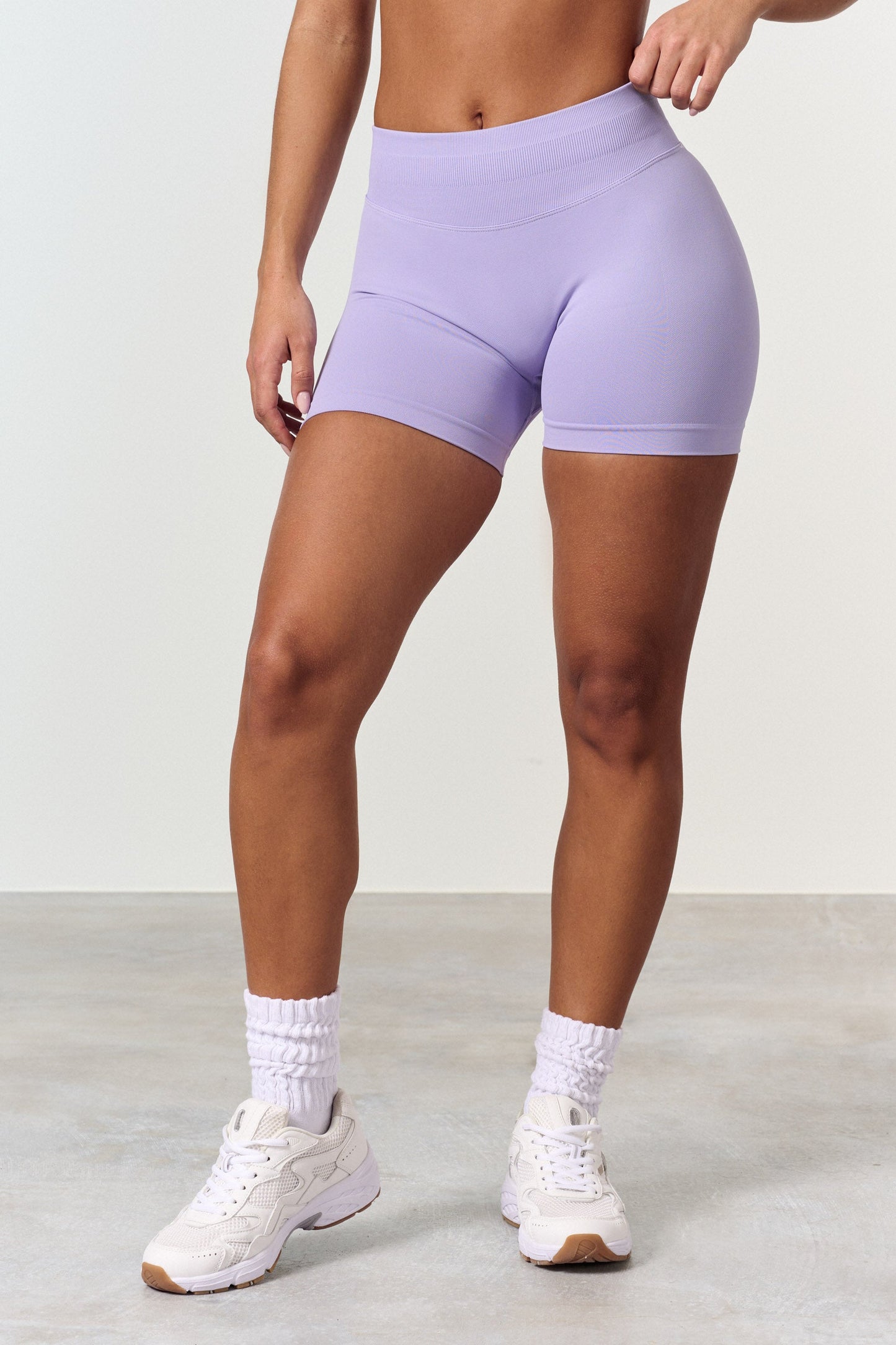 Mid Waist Seamless Shorts i mjukt och stretchigt material. Den nya scrunchen ger bakdelen en naturlig, fin passform, slät hud och inga veck. Scrunchshortsen ger önskad effekt på alla typer av bakdelar, men det syns knappt att de har scrunch. Shortsen har ingen söm framtill och sitter bra runt midjan. De är något lägre i midjan jämfört med tightsen.
